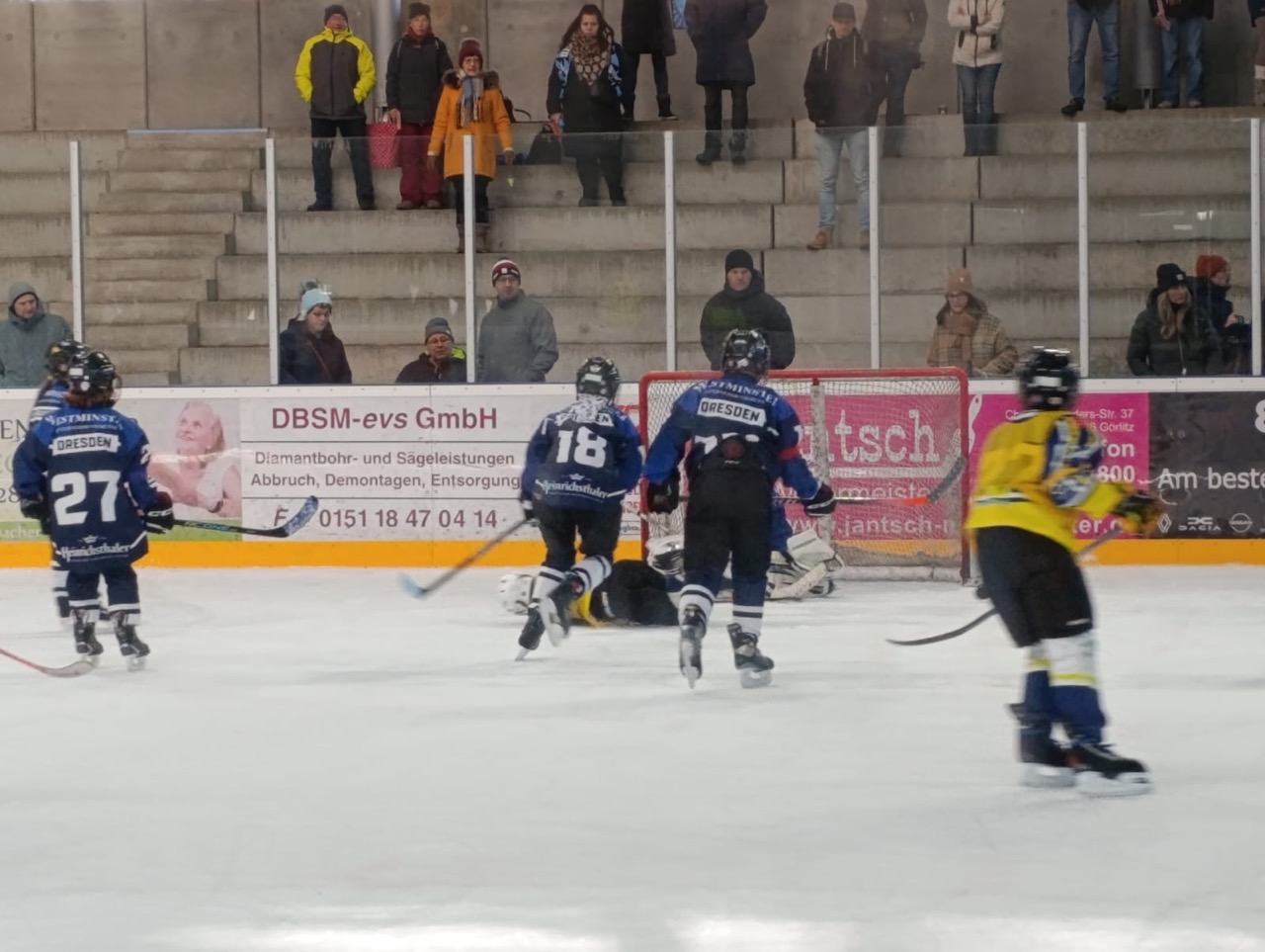 Spiel drei war gegen den ESC Dresden. Es sollte das härteste und körperbetonende Spiel des Tages werden. Von Anfang an wurden auf den Spieler statt auf den Puck gegangen. Das Spiel war von vielen Unterbrechungen geprägt. Unsere Spieler passen sich leider dem Körperspiel an, anstatt Eishockey zu spielen. Es gelang Dresden irgendwie den Puck einmal hinter unseren Goalie zu bekommen. Wir versuchten alles, um irgendwie den Ausgleich zu erzielen, was uns leider nicht gelang. Auch dieses Spiel haben wir mit 1 zu 0 verloren.