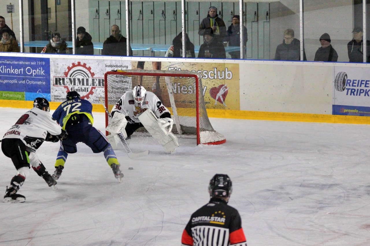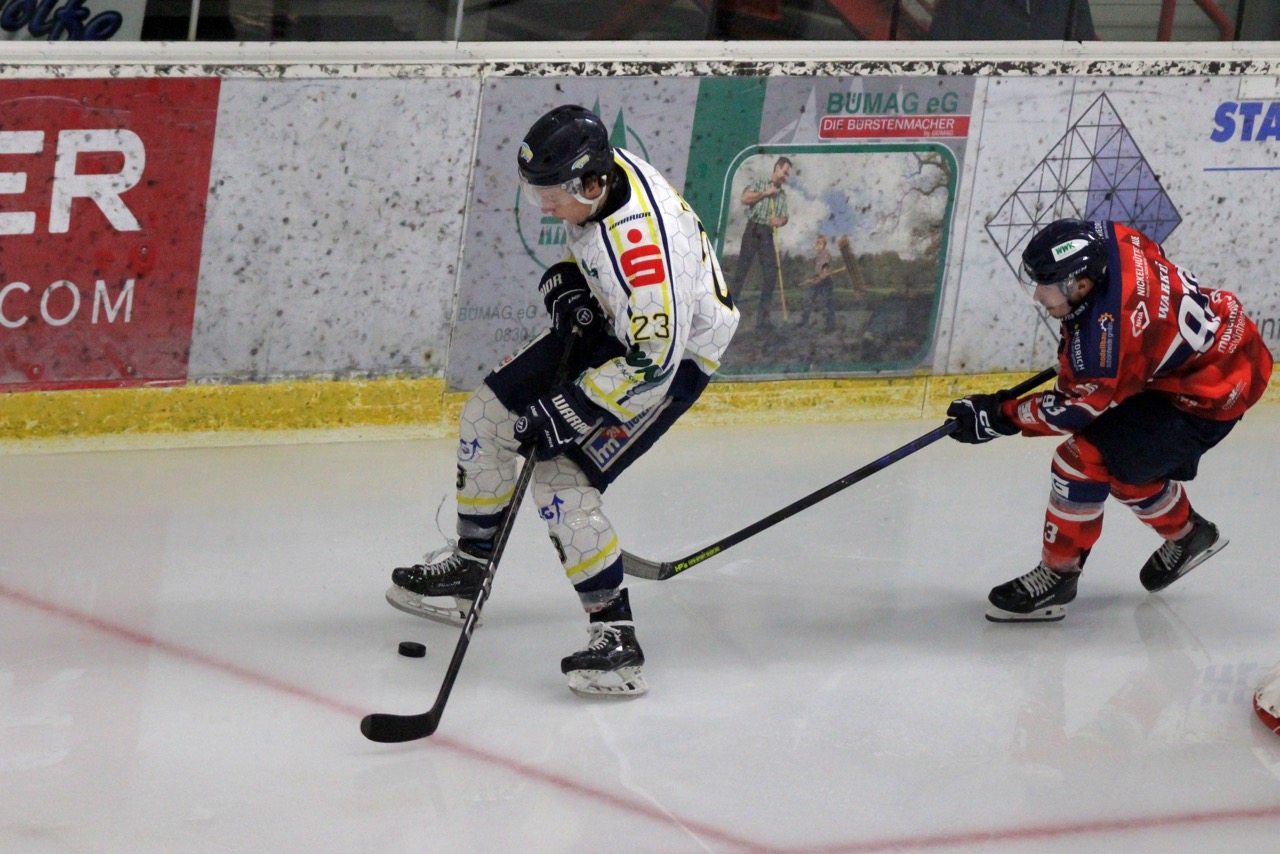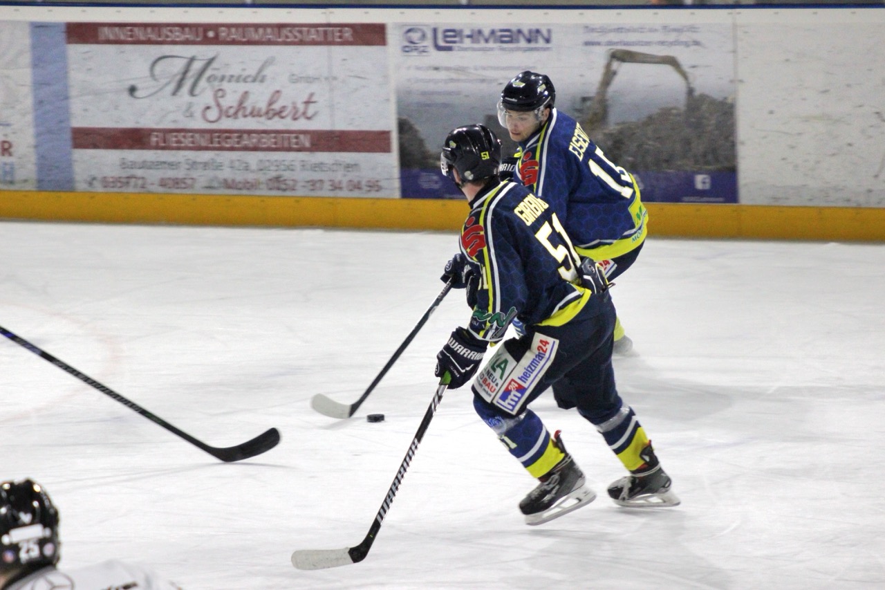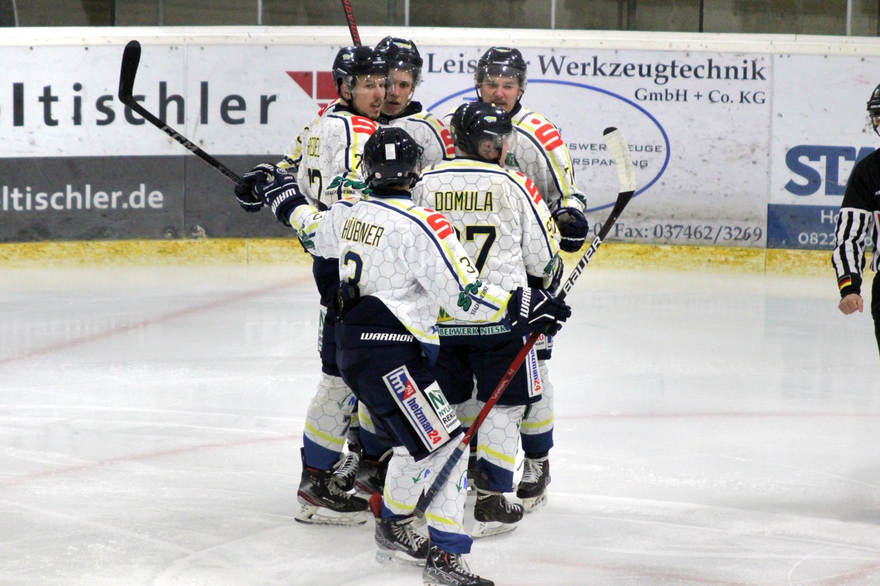 Beide Mannschaften begannen zunächst vorsichtig, ohne großes Risiko zu gehen. Dennoch nutzten die Gäste ihre erste Gelegenheit konsequent: In der 9. Minute traf Sebastian Hoffmann zur 0:1-Führung der Huskies, vorbereitet von Garwin Stewart. Die Nieskyer antworteten jedoch schnell. Thomas Meißner stellte in der 11. Minute nach Vorlage von Moritz Wolfram auf 1:1. Kurz vor der ersten Pause belohnte sich die Reserve für ihren zunehmenden Druck: Nick Bolze erzielte in der 19. Minute das 2:1 und drehte damit das Spiel zugunsten des Heimteams.