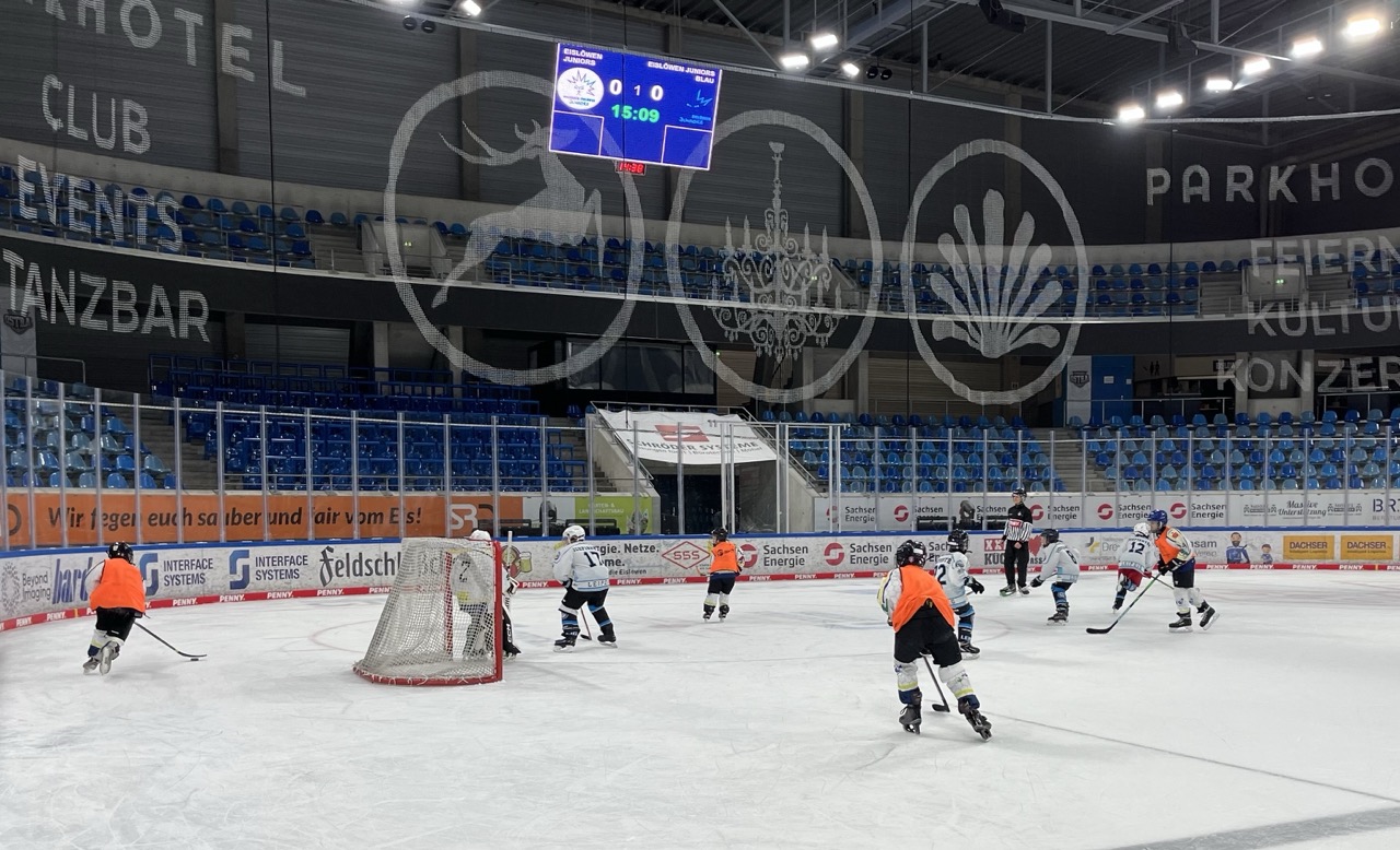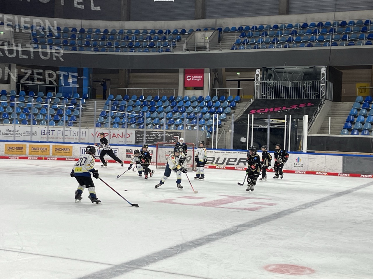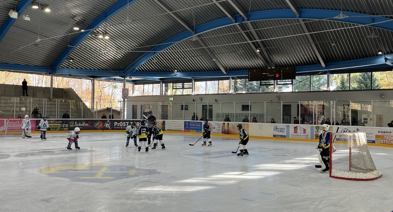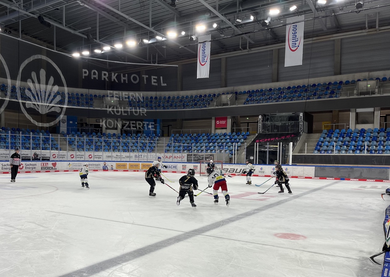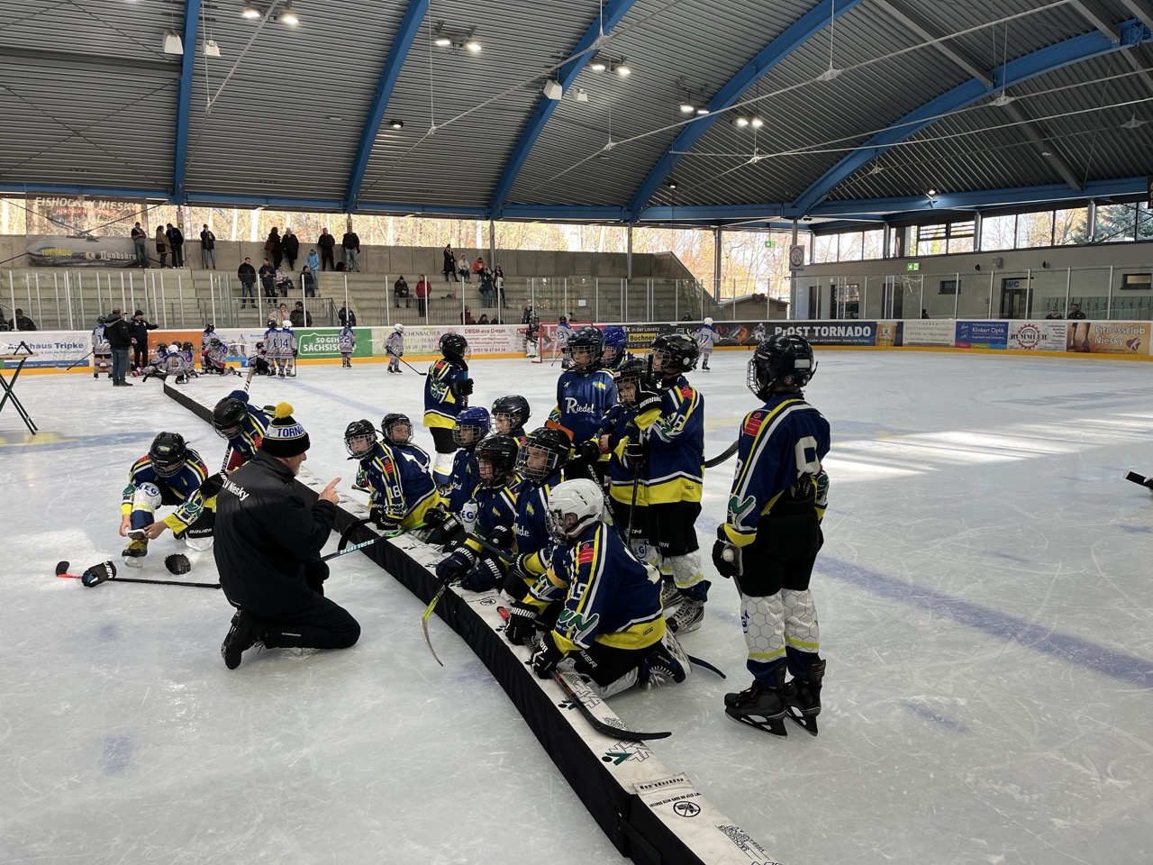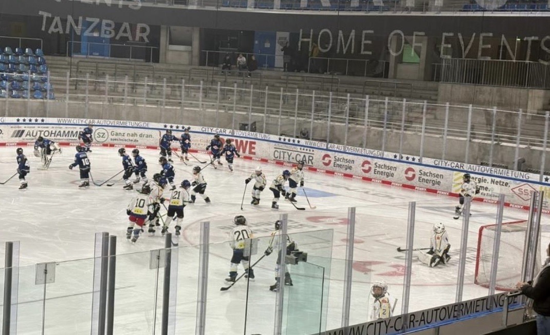Am Samstag den 08.11.2025 spielte unsere U11 ihr erstes Heimspiel der laufenden Saison. Zu Gast waren der Leipziger EC, ESC Dresden und die SG Schönheide /Chemnitz. Es war der Tag wo man endlich nach langen warten die neuen Trikots anziehen durfte . Nach der Erwärmung zog man sich schnell die Ausrüstung an um als erster das neue Trikot anziehen zu können. Die Begeisterung der Kinder war echt groß.