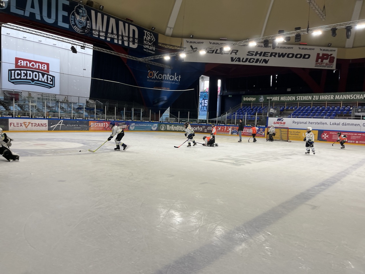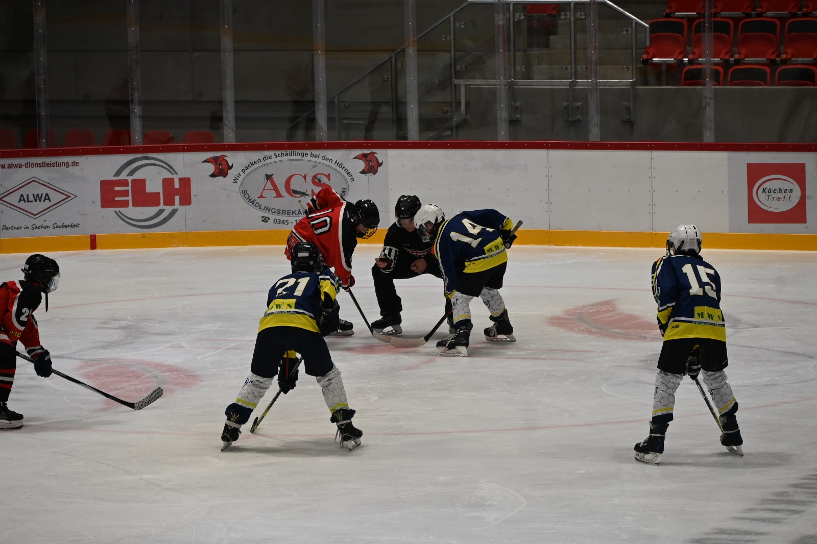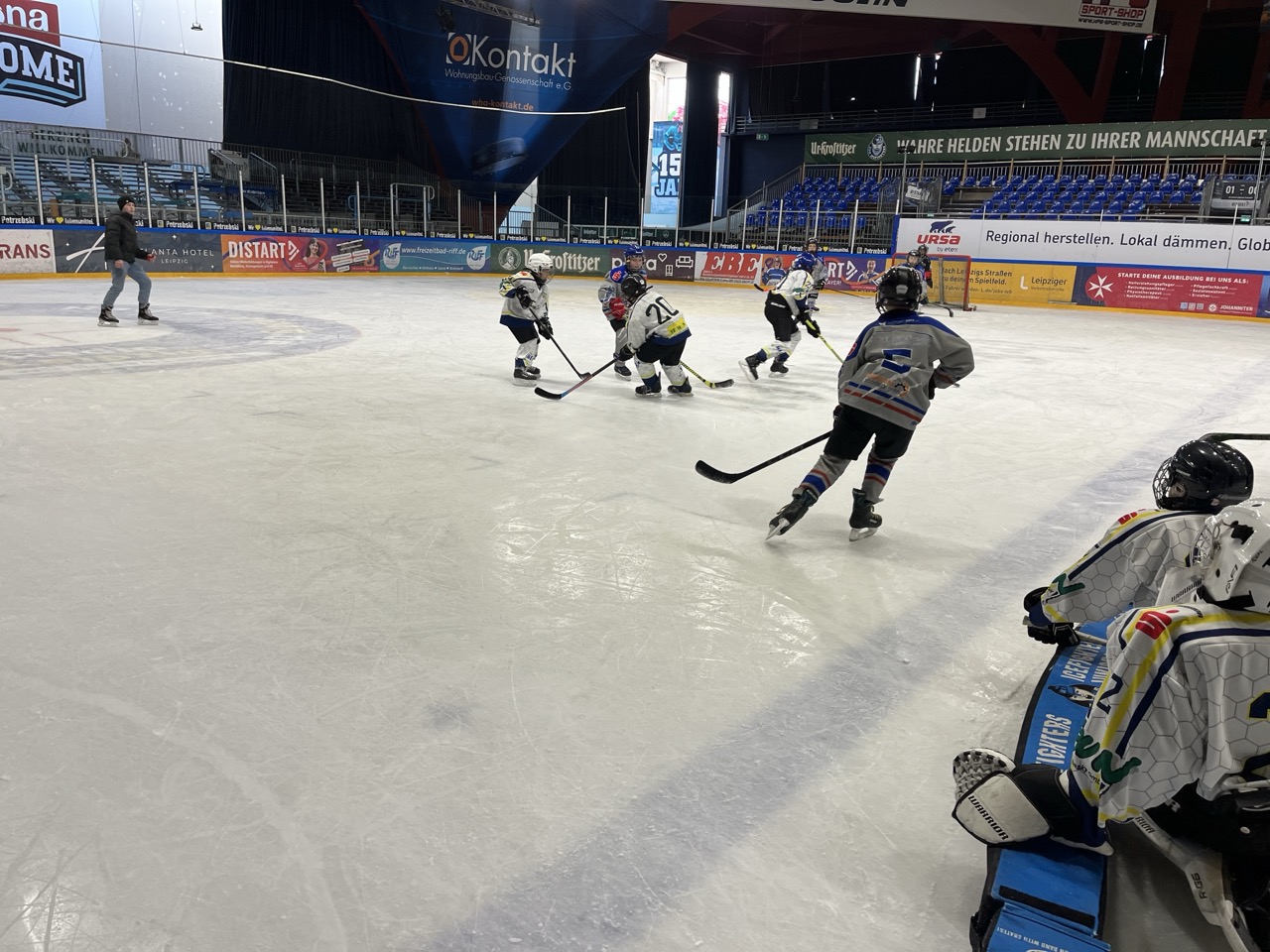 Am Samstag den 22.11.2025 begann der Tag bei Zeiten. Der Bus fuhr pünktlich 5:30 Uhr in Richtung Leipzig in den Anona Eisdom. An diesem Turniertag traf man auf den Leipziger EC, SG Erfurt/ Ilmenau und Schönheide. Das erste Spiel war gegen schwache Leipziger Mannschaft. Von Anfang an waren unsere Wirbelwinde nur in der Hälfte von Leipzig und testen den Goalie nach allen Maßen. Bis zur Halbzeit müsste er ganze sechs mal hinter sich greifen. Man spielte wenig als Team sondern machte viele Alleingänge. Man bezwang den Goalie noch weitere fünf mal. In diesem Spiel kam für unsere Goalies Langeweile auf, da sie keinen Schuss auf ihr Tor bekamen. - Das Spiel haben wir 11:0 gewonnen.